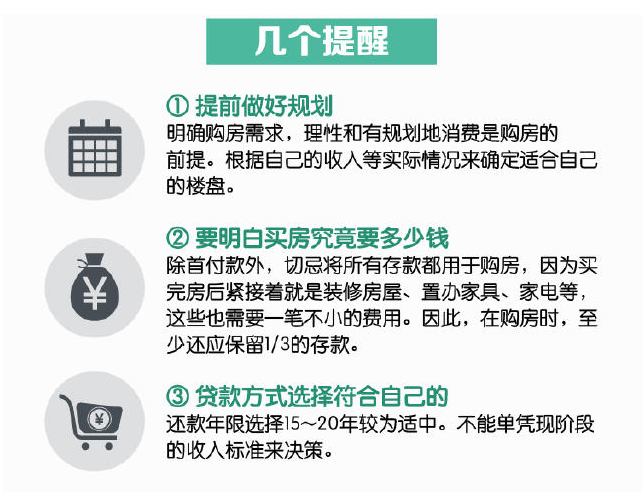 理性消费是购房的前提,建议各位购房者在买房时最好根据自己的实际收入情况来选择适合自己的楼盘。并且提前做好各种规划,比如面签和保持个人信用等等。